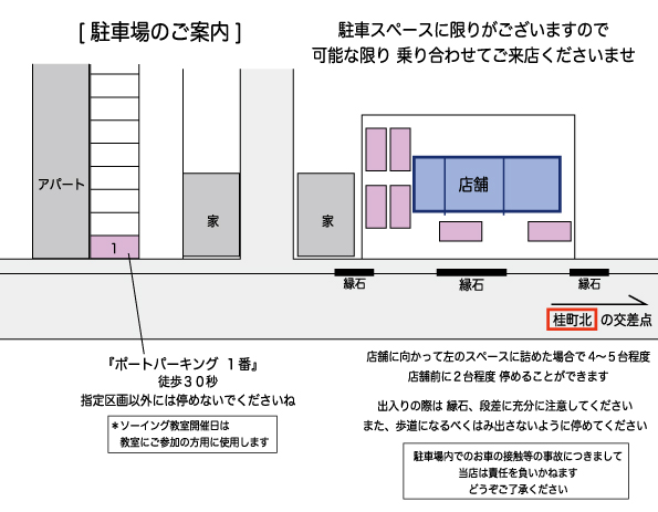 →1つ目信号桂町北を左折 → 90m先右手 にあります